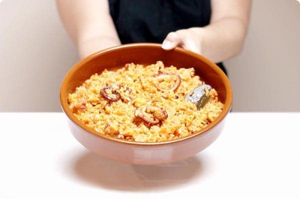 7.- Ya solo queda verter el arroz por el bocal y programar 13 minutos, 100º, giro a la izquierda y velocidad cuchara.